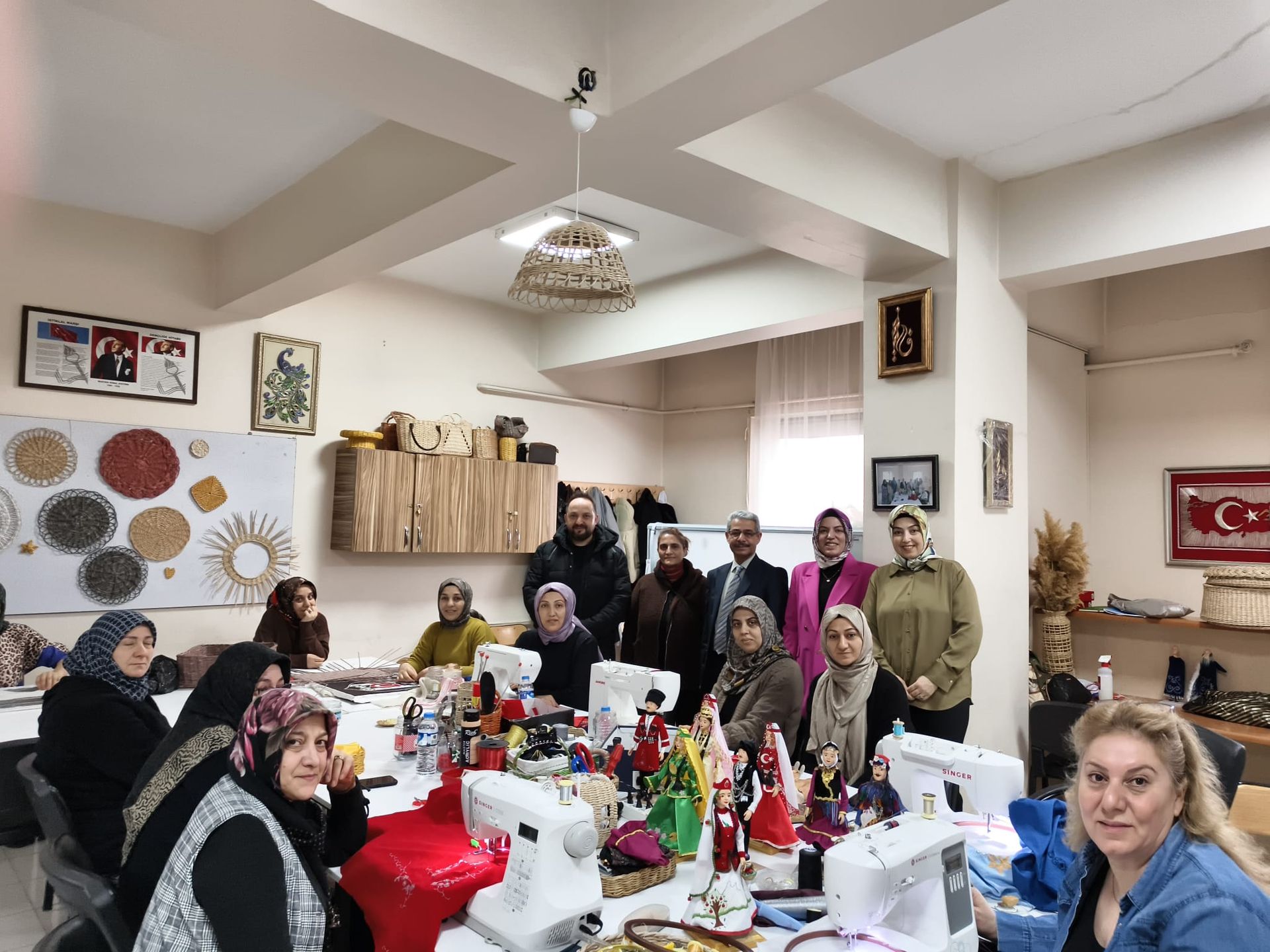 Ziyaret kapsamında, Usta Öğretici Akile Yeşil’in yürütücülüğünü yaptığı Iğdır Bebekleri ve kağıttan sepet yapımı kursları incelendi. El emeğiyle üretilen çalışmalar hakkında bilgi alınarak kurs süreçleri değerlendirildi. Ardından Usta Öğretici Semra Keskin’in yönetimindeki dikiş ve nakış kursları hakkında bilgi edinildi; kursiyerlerle sohbet edilerek yürütülen eğitim faaliyetleri yerinde gözlemlendi.