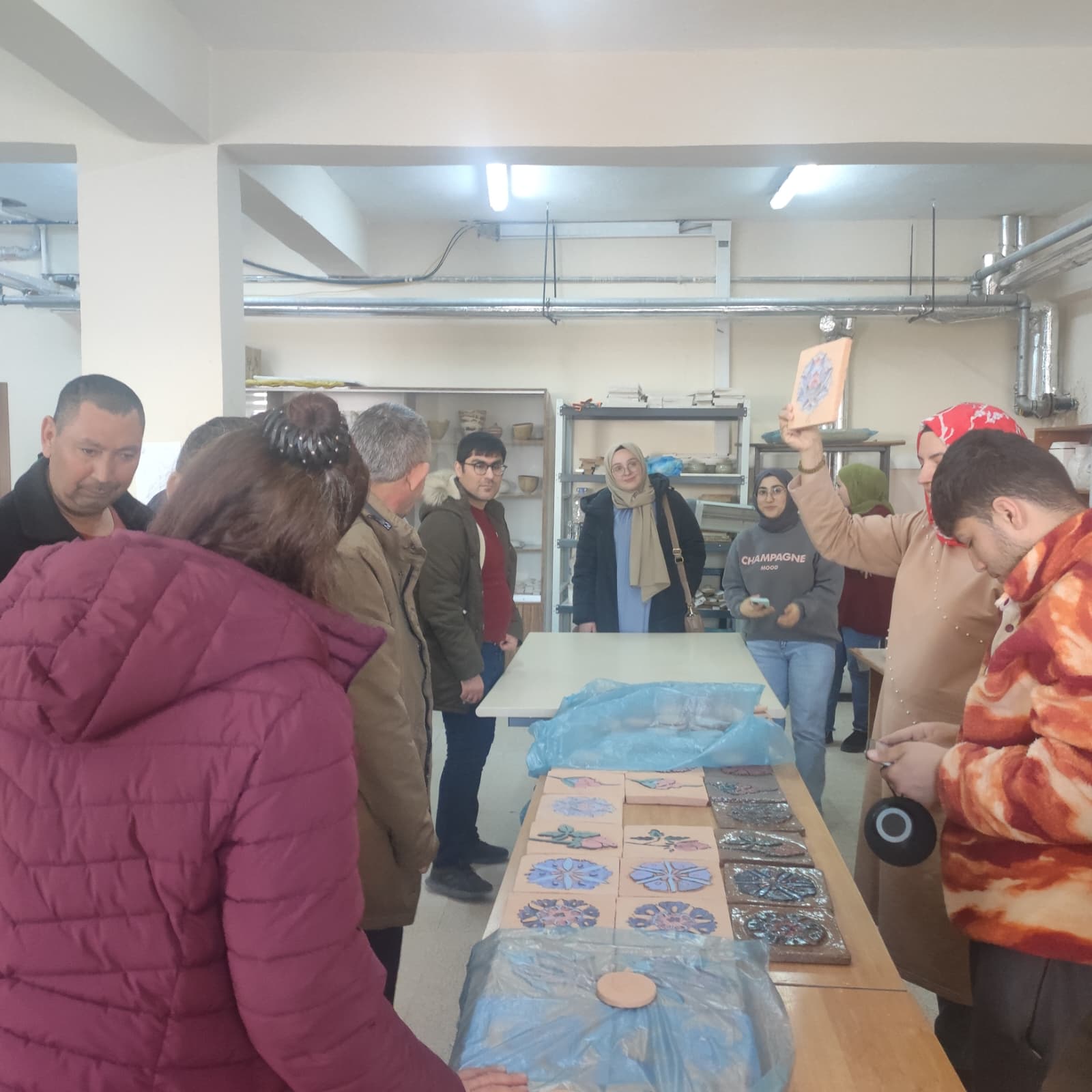 Suveren Kampüsü’nde bulunan Seramik Atölyesinde Öğr. Gör. Dr. Elçin Telli; Karaağaç Kampüsü’nde yer alan Ebru Atölyesinde Öğr. Gör. Melahat Teleri, Deri Atölyesinde Öğr. Gör. Akif Bayrak ve Halı-Kilim Atölyesinde Öğr. Gör. Rabia Karta tarafından misafirlere atölyelerin işleyişi ve yürütülen çalışmalar hakkında bilgi verildi. Ayrıca Ahşap Atölyesi de ziyaret edilerek üretim süreçleri yerinde gözlemlendi.