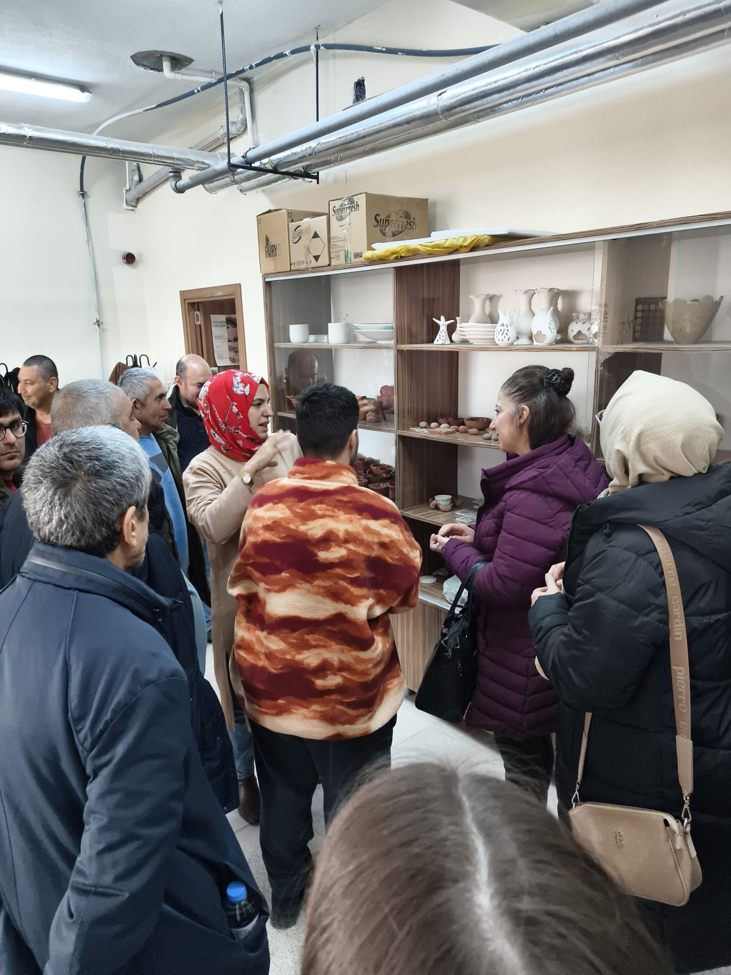 Ziyaret kapsamında yalnızca bilgilendirme yapılmakla kalınmadı; engelli bireylerin sanatsal üretim süreçlerini deneyimleyebilmeleri amacıyla uygulamalı çalışmalar gerçekleştirildi. Katılımcılar, el becerilerini ortaya koyabilecekleri etkinliklere dahil edilerek üretim sürecine aktif şekilde katılım sağladı.